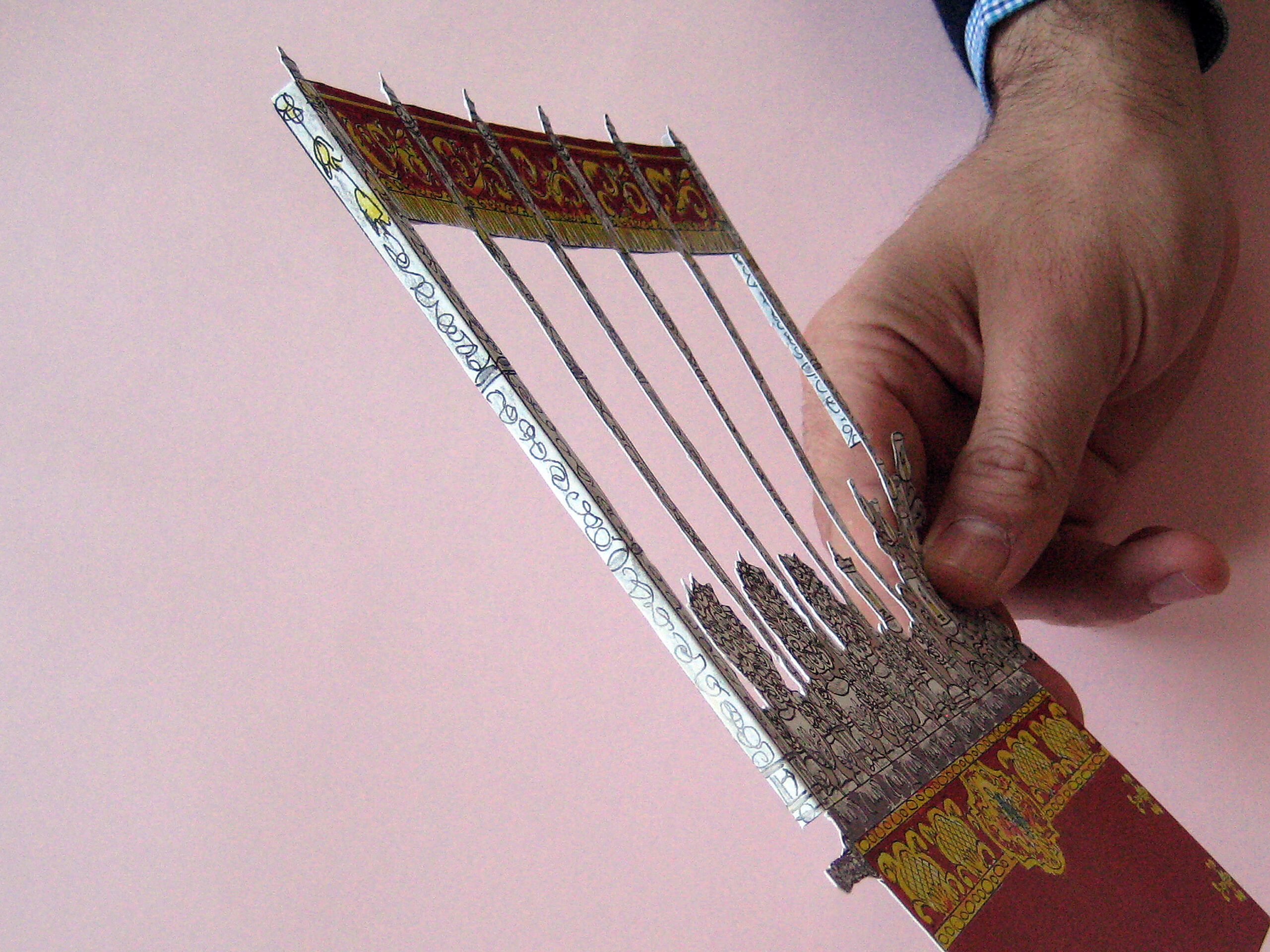 PASO DE VIRGEN: Recortar todas las piezas e iniciar el montaje del siguiente modo, recordando el hendido en las líneas rectas (Foto 13):