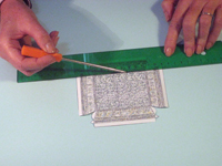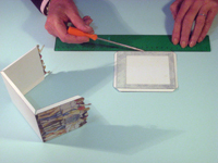 Es primordial y fundamental que, en todas la líneas que haya que doblar, se utilice una regla para apoyarse sobre ellas marcándolas y pasándoles la punta de un destornillador o de una tijera hasta hacerle un hendido a la cartulina por la raya marcada. Así se doblarán con más facilidad y los dobleces estarán rectos. (Fotos 2, 5, 7, 10, 19 y 23).