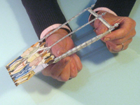 4.- Pegar los laterales del paso a los laterales del cajón, teniendo en cuenta que los 2 varales delanteros y los 2 traseros hay que doblarlos antes en ángulo y unir su extremo inferior a la mesa. (Foto 19, 20, 21 y 22)