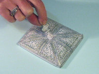 2.- Montar la peana de la Virgen y pegar la base (nº 2) sobre la mesa del cajón (nº 1). (Fotos 10, 11, 12 y 13)