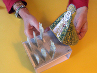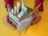Es primordial y fundamental que, en todas la líneas que haya que doblar, se utilice una regla para apoyarse sobre ellas marcándolas y pasándoles la punta un destornillador o de una tijera para hacerle un hendido a la cartulina por la raya marcada (Foto 2). Así se doblarán con más facilidad y los dobleces estarán rectos.