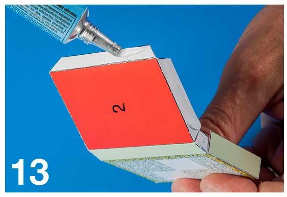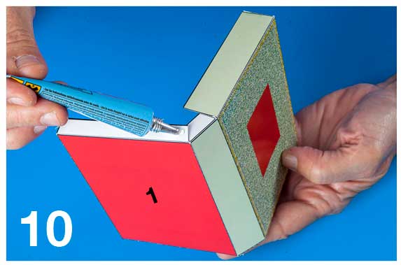 Con el pegamento de contacto incoloro, se pegará en menos tiempo y con más solidez. Para que el pegado sea más rápido, una vez untado el pegamento, soplar sobre el mismo antes de acoplarlo hasta que cambie su aspecto cristalino por opaco, así se solidificará más pronto. Aparte, será conveniente emplear una tijera pequeña de puntas para recortar las partes más estrechas.