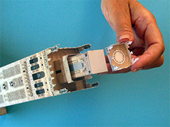 11.- Doblar circularmente la pieza que tiene los números 19 y 20, uniéndola con la pestaña nº 20. Para que quede perfectamente redonda debemos de utilizar un lápiz envolviendo la pieza alrededor del lápiz, y pegarla sobre el círculo 19. Posteriormente pegar esta pieza sobre el dorso del círculo nº 18 que habíamos pegado anteriormente. (Foto 18)