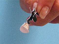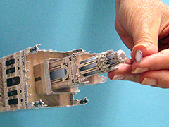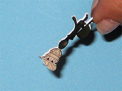 14.- Por último, unimos las dos caras del Giraldillo (veleta de la torre). Antes de pegarlas hay que doblar hacia el exterior los dos semicírculos de la base, y pegar entre sí el resto de la figura (Foto 22 y 23). Finalmente, pegamos los dos semicírculos de la veleta sobre el círculo nº 24 que pegamos anteriormente. (Foto 24)