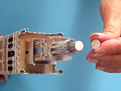 12.- Doblar circularmente la pieza que tiene los números 21, 22 y 23, uniéndola con la pestaña nº 22. Para que quede perfectamente redonda debemos de utilizar un lápiz envolviendo la pieza alrededor del lápiz, y pegar la base nº 21 sobre el círculo 21, que está en el centro de la pieza que habíamos pegado anteriormente. (Foto 19)