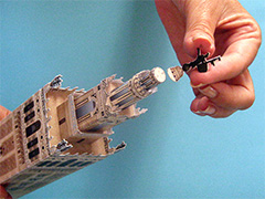 1.- Montar el cuerpo de la torre doblando cada una de las cuatro caras y unir la pieza 3 con el interior de la cara que cierra la figura (nº 3 con una flecha). (Foto 3)